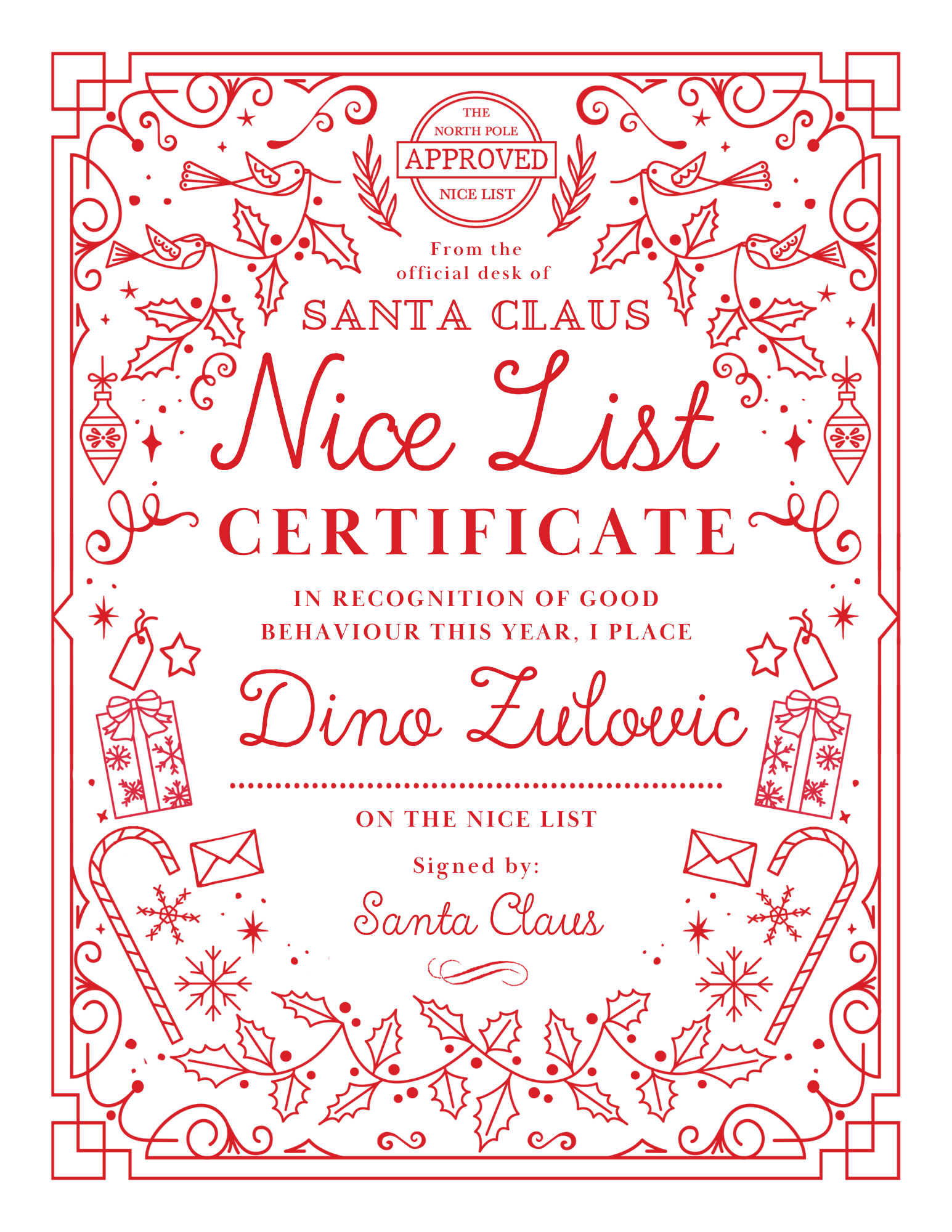 - Personalized Nice List Certificate