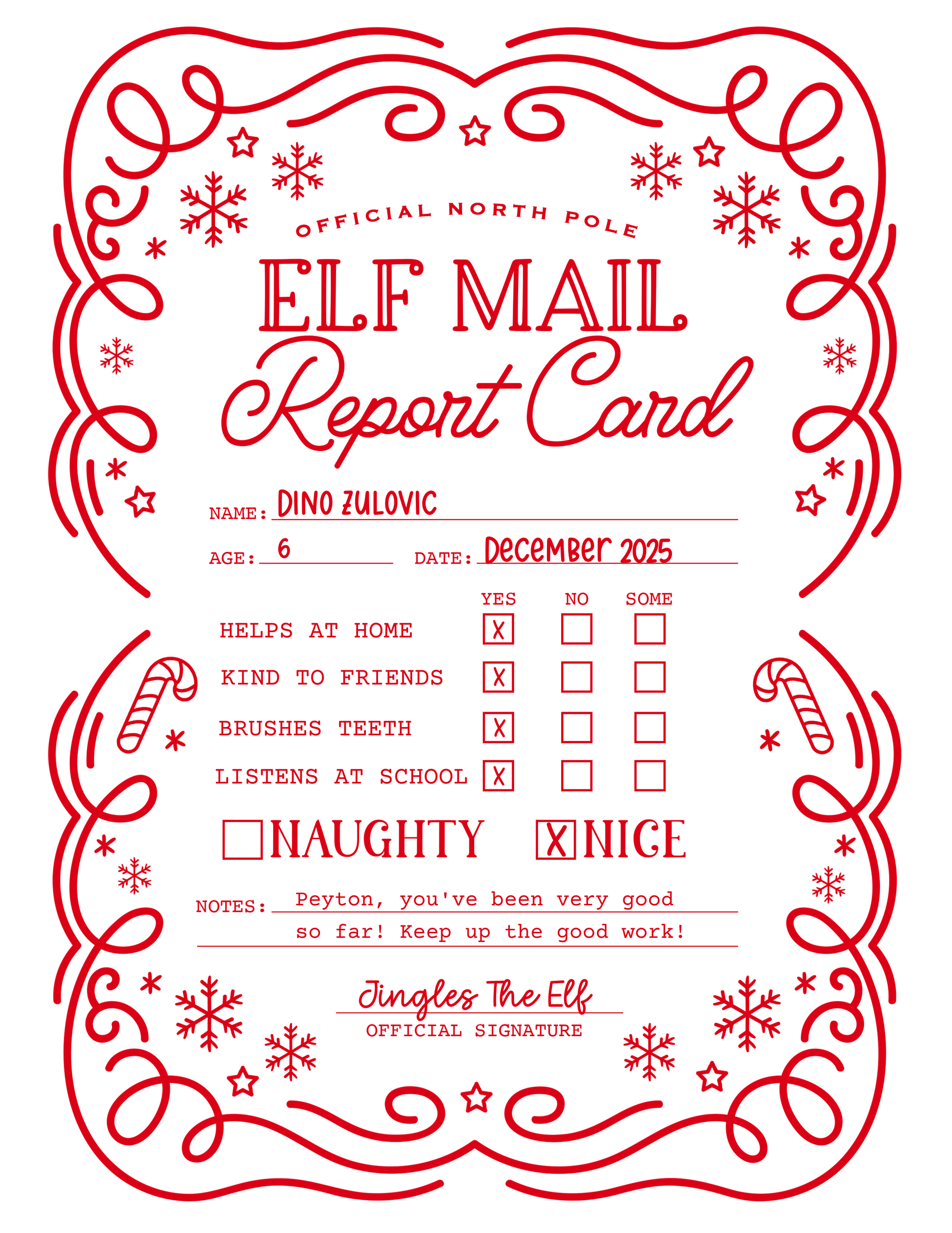 - Personalized Elf Report Card